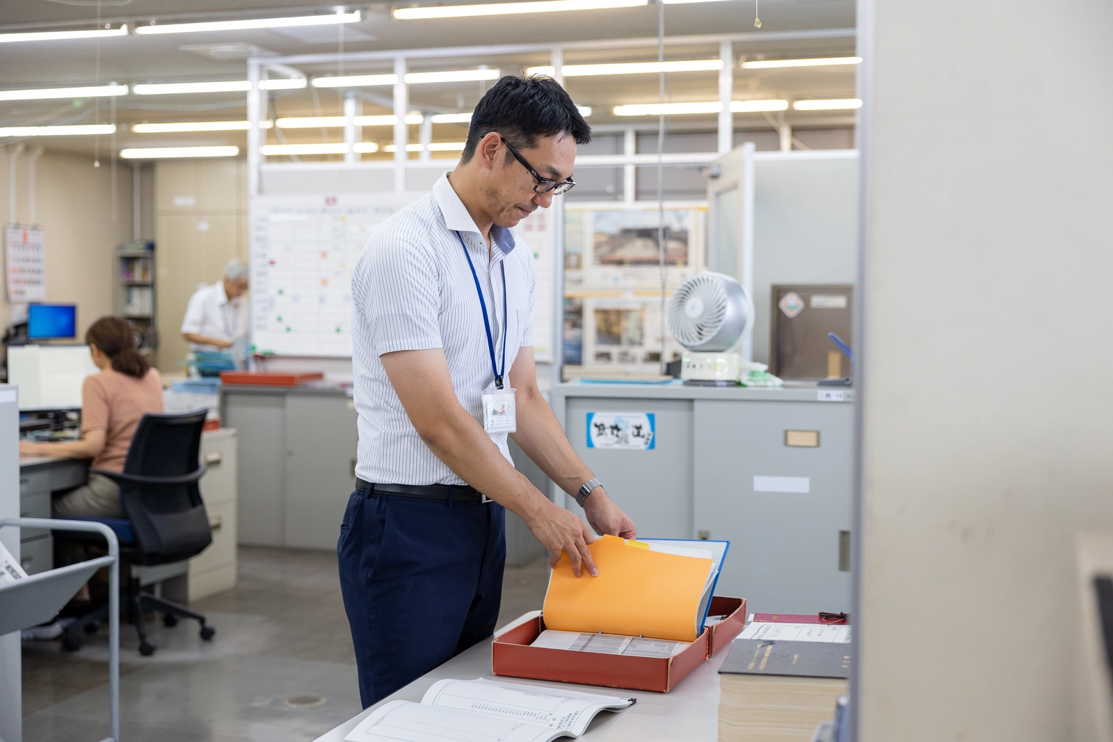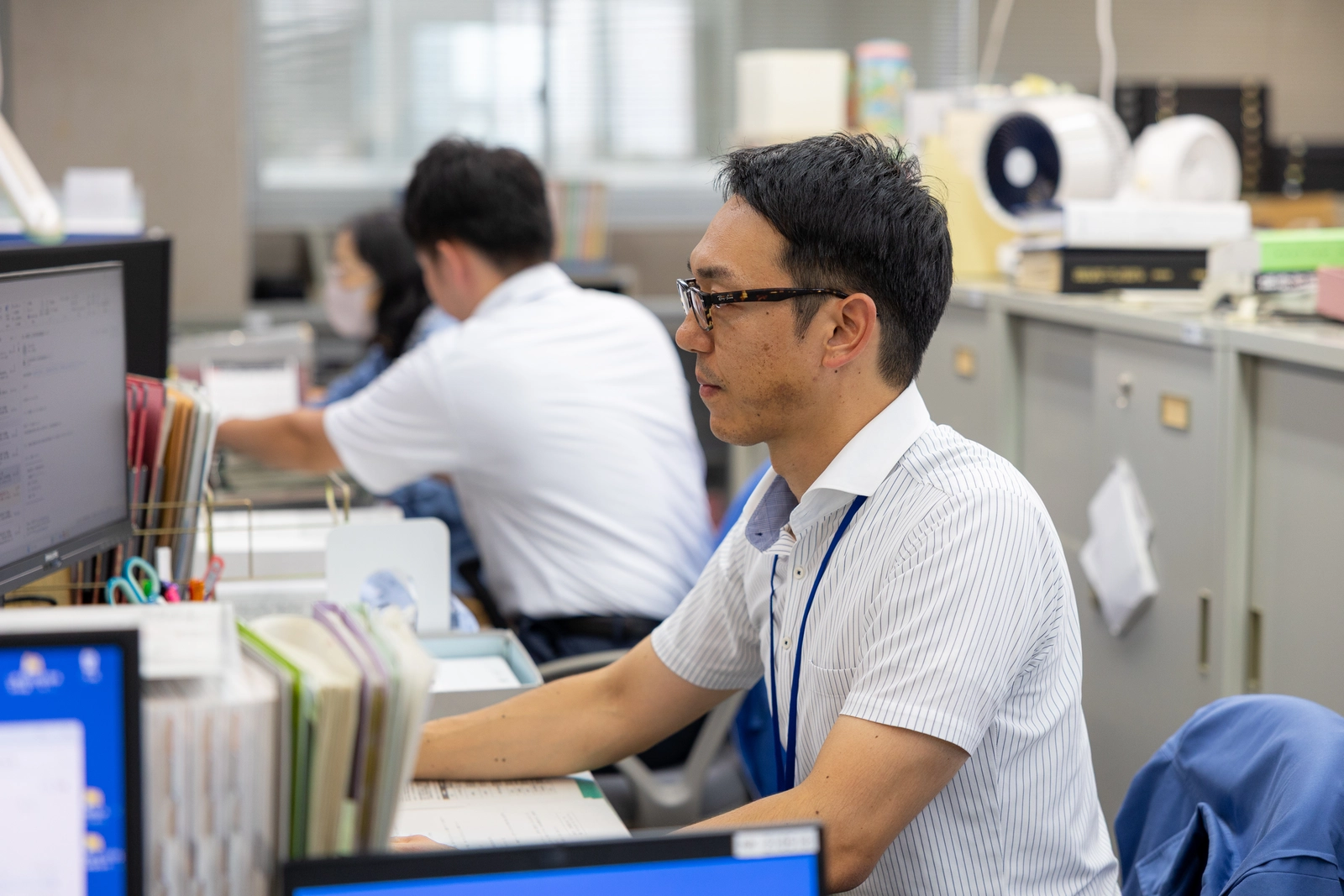 職場の年代は20~60代までと幅広く、職種も事務・土木・電気・機械とさまざまです。しかしながら、分野の垣根を越えて相談ができる雰囲気があり、チームで仕事を進めているという一体感があります。また、有志でボウリング大会やギター演奏会などが開催され、業務外でも交流を深めることができます。