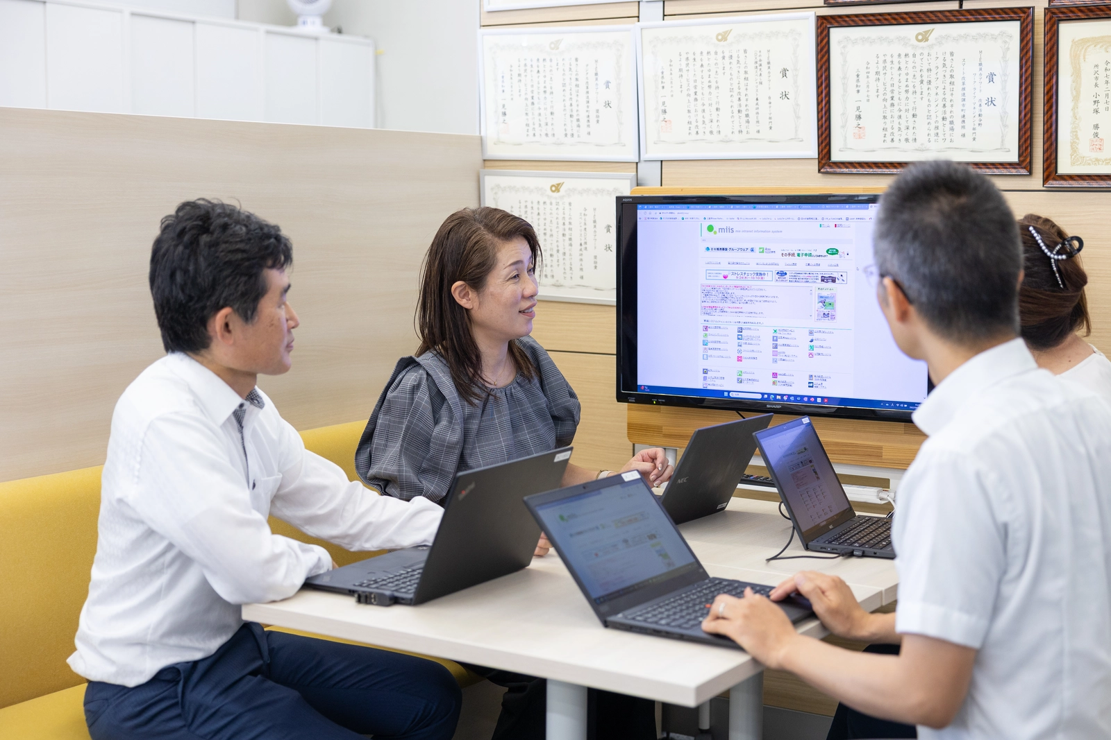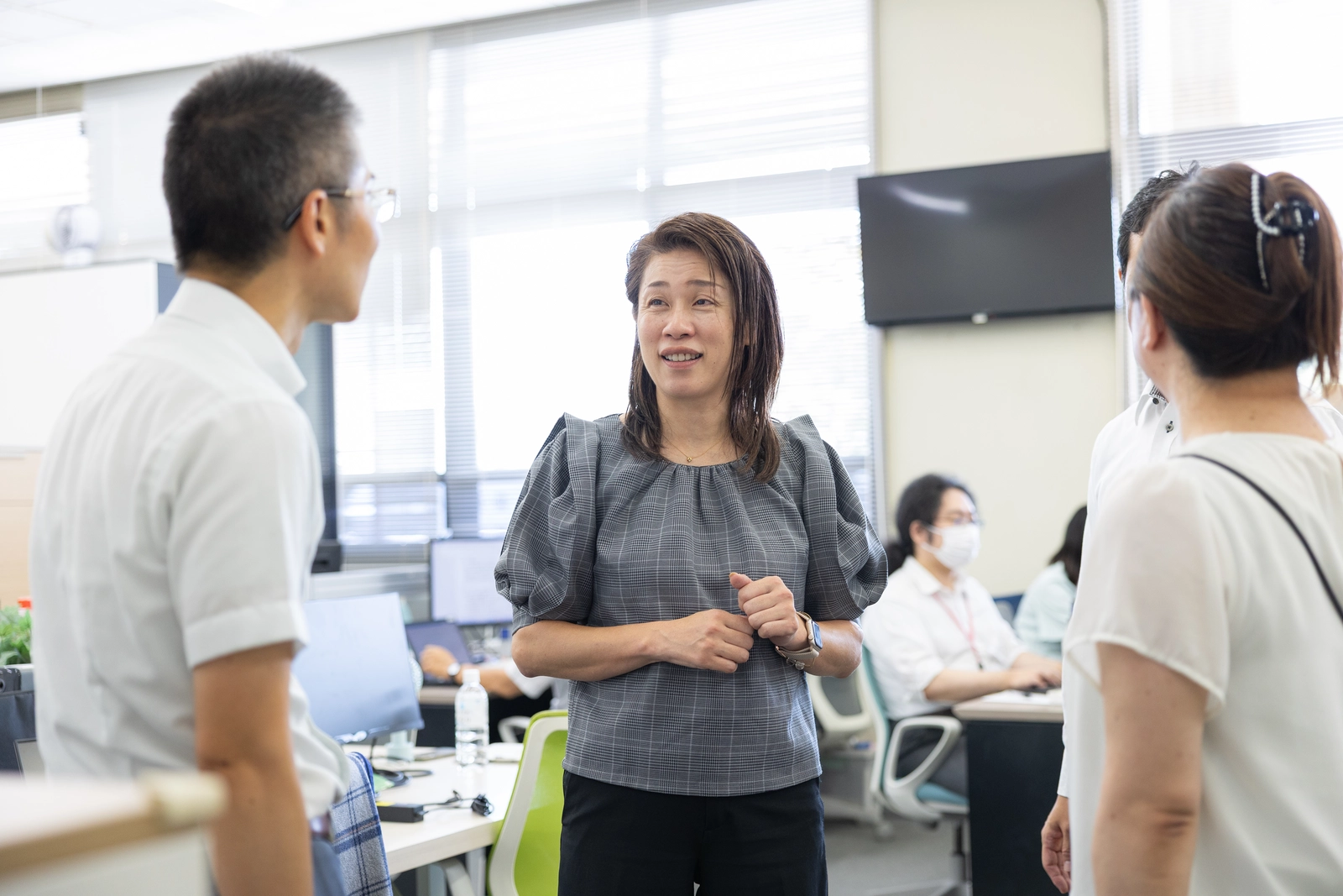 課員は私を含めて6名と少人数で、仲が良く、コミュニケーションが活発です。困ったときにはいつでも相談してもらえるよう、話しかけやすい雰囲気を意識しています。私自身も分からないことがあれば、周りに「教えて」と言いますし、逆に違和感があれば「それってどうなの?」と伝えて、皆で議論します。私にとっては家族のような存在です。