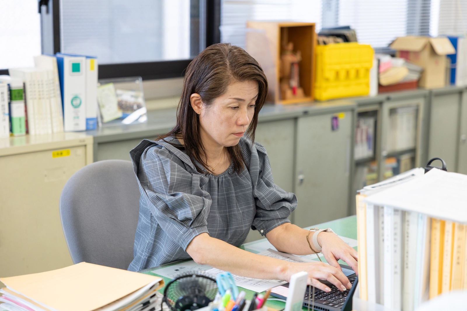 以前は、仕事と家庭の両立が中途半端に感じ、どちらも自信を持てない時期がありましたが、ある仕事で相手の役に立てたという実感が得られ、自分を肯定できるようになりました。 子どもも社会人になり、一職業人として相談を受けることもあり、子どもに働く姿を見せられたことも含め、大変さ以上に得るものが大きかったと感じます。仕事も家庭も欲張って大丈夫です。三重県職員には、育児制度をはじめ、働き方の選択肢がたくさんあります。