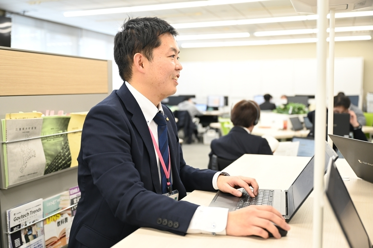 私は戦略企画班に所属しており、県の総合計画である「強じんな美し国ビジョンみえ」「みえ元気プラン」にデジタル施策を反映させるための取りまとめや、議会への説明資料などの局内打ち合わせ調整・取りまとめなどを担当しています。