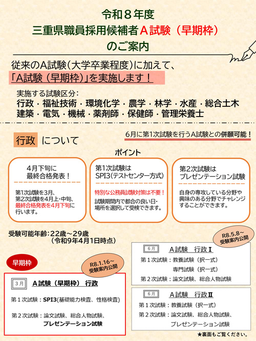 令和8年度 三重県職員採用試験に関するお知らせ (令和7年12月24日現在)